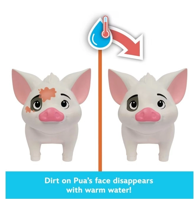 La funzione interattiva con l’acqua entusiasmerà i piccoli esploratori: basta acqua calda e lo sporco sul musino di Pua scompare, per poi tornare gradualmente. Con il set i bambini allenano anche la motricità fine e sviluppano fantasia e gioco di ruolo.