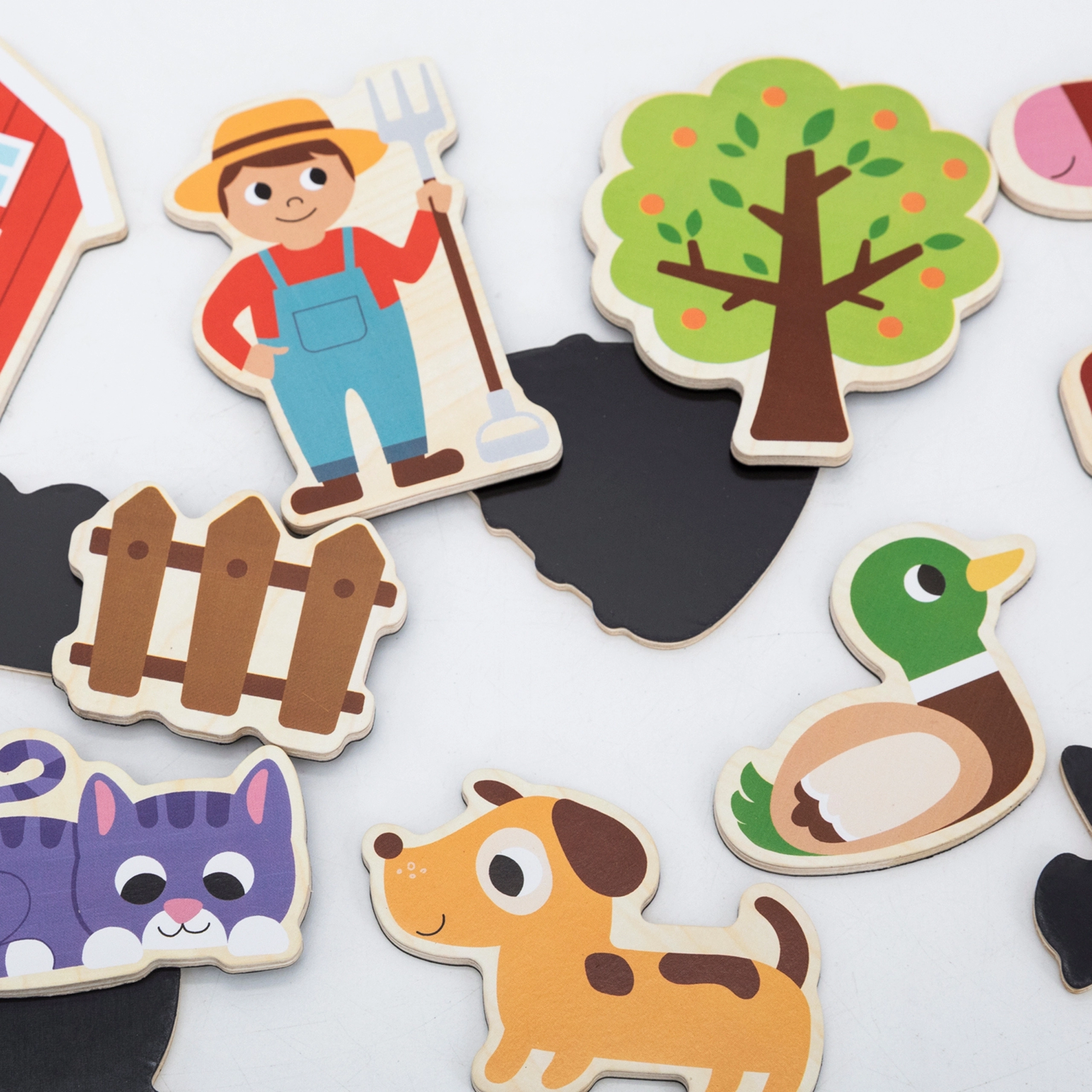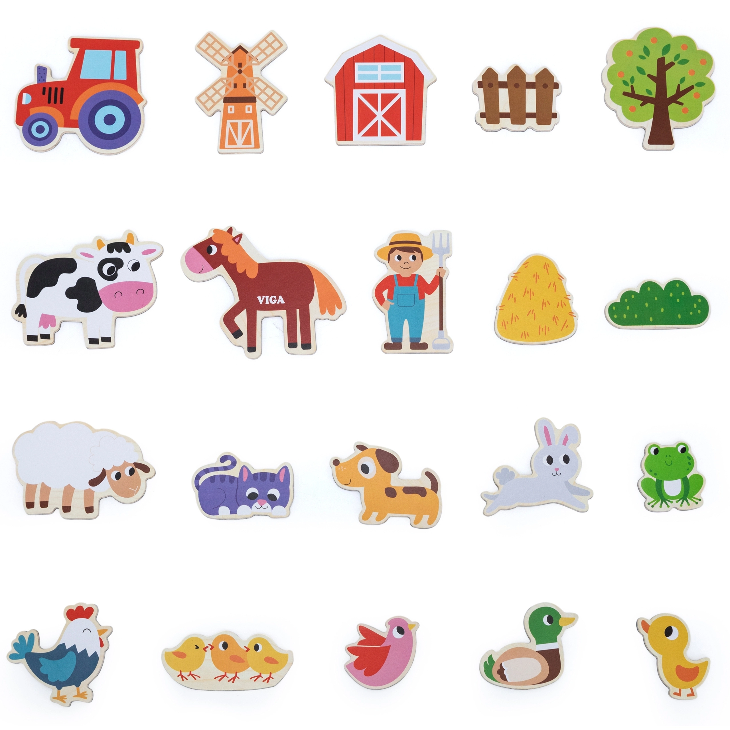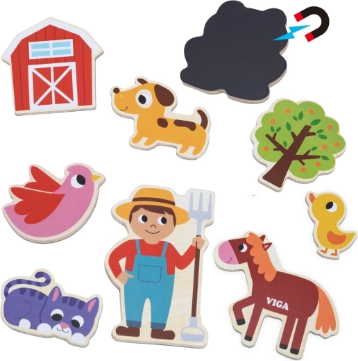 Scopri la magia della vita di campagna con i magneti in legno VIGA. Questo set di 20 magneti colorati con animali della fattoria è ideale per frigorifero, lavagna magnetica e basi speciali. I bambini possono creare scenette, raccontare storie e imparare in modo naturale a riconoscere gli animali da fattoria – tutto sotto forma di gioco sicuro e divertente.