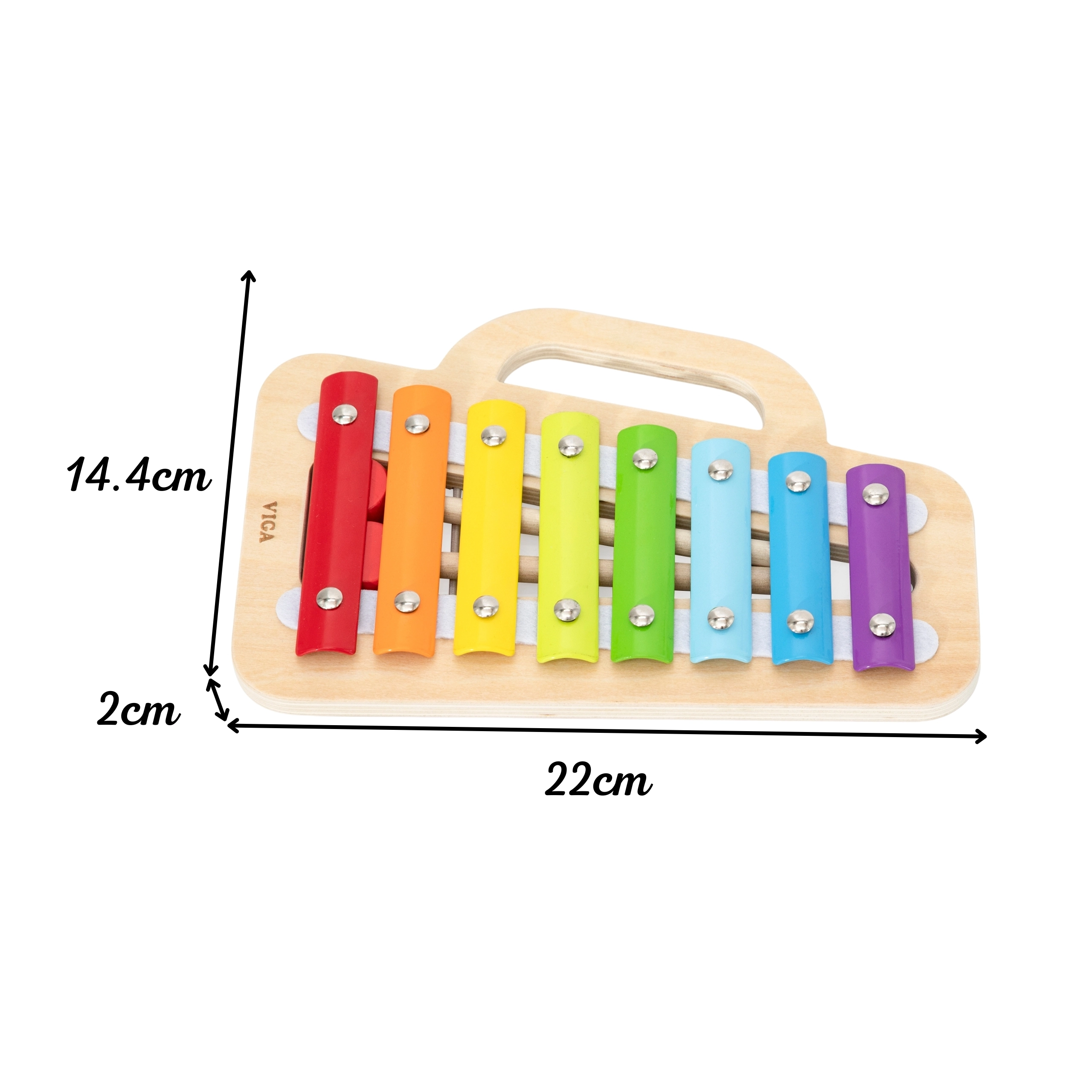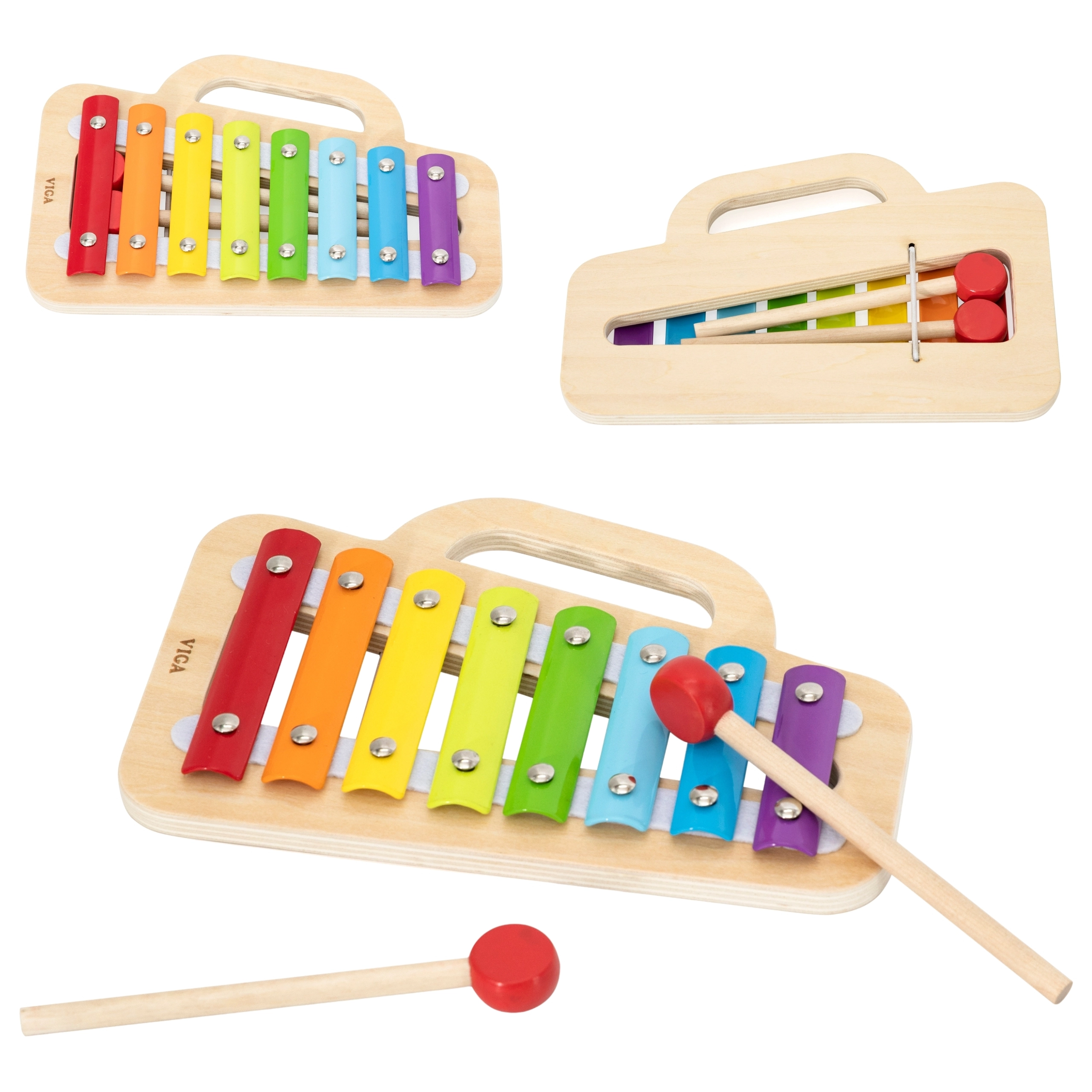 Scoprite il talento musicale del vostro bambino con questo xilofono VIGA in legno, colorato, sicuro e facile da trasportare. Offre 8 toni puliti per i primi esperimenti musicali, un corpo in legno resistente e lamelle metalliche codificate a colori per un apprendimento semplice. Il pratico vano porta-bacchette e la maniglia laterale garantiscono un trasporto comodo e un facile riordino dopo il gioco.