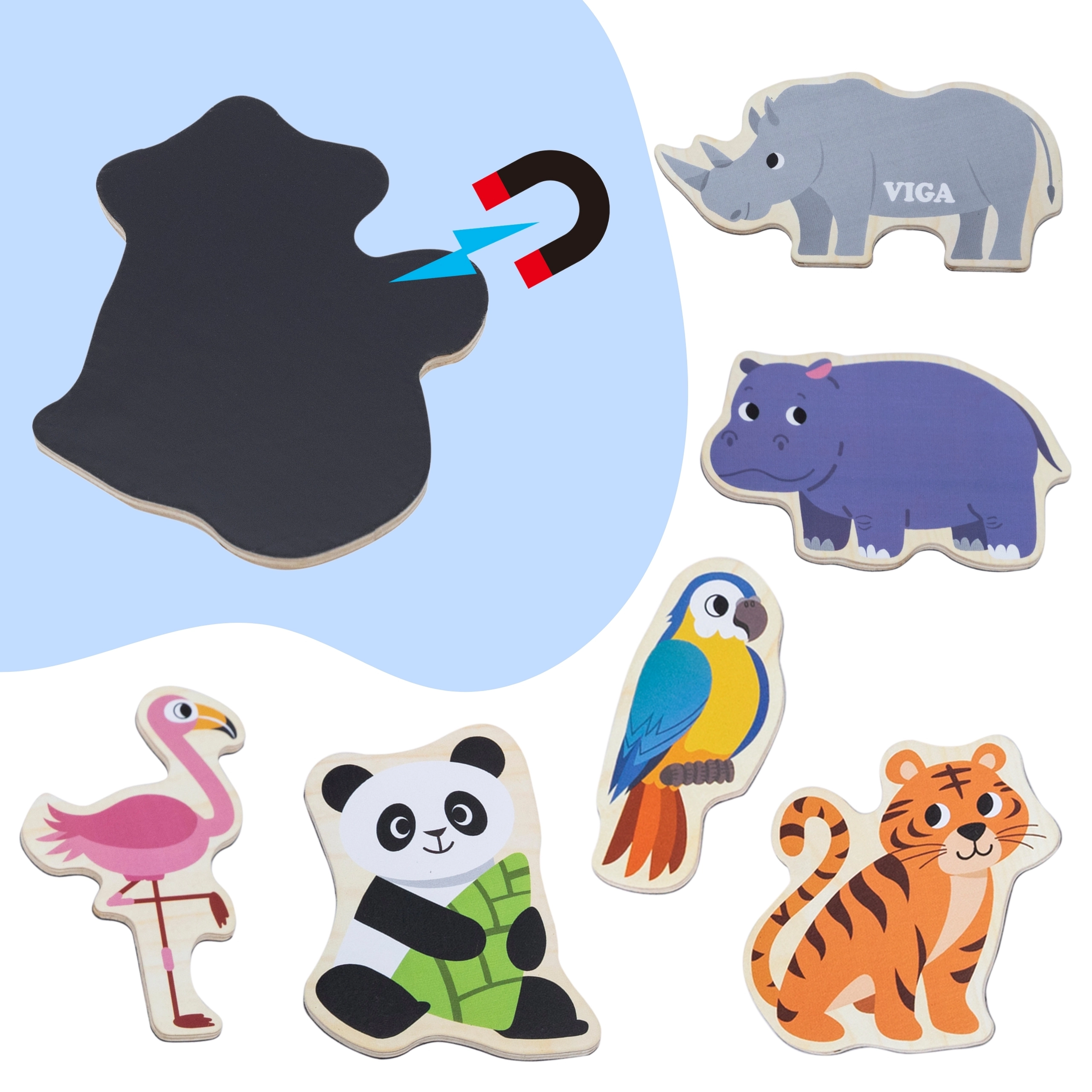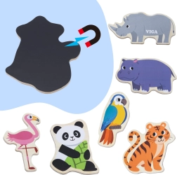 Il set di magneti in legno VIGA – Animali selvatici offre ai bambini un divertimento allegro ed educativo. Pezzi illustrati in modo realistico come leone, giraffa, coccodrillo o pappagallo stimolano la conversazione, la scoperta del mondo e i primi racconti. Grazie al robusto strato magnetico aderiscono al frigorifero, alla lavagna magnetica e ad altre superfici metalliche.