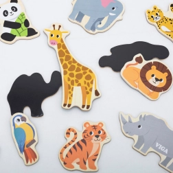 I magneti sono realizzati in legno di qualità con superficie liscia per un uso sicuro. Il set è ideale per il gioco condiviso tra genitori e bambini, per classificare gli animali, imparare i colori e allenare la coordinazione occhio–mano. La pratica confezione in scatola colorata facilita il riponimento ed è un’ottima idea regalo.
