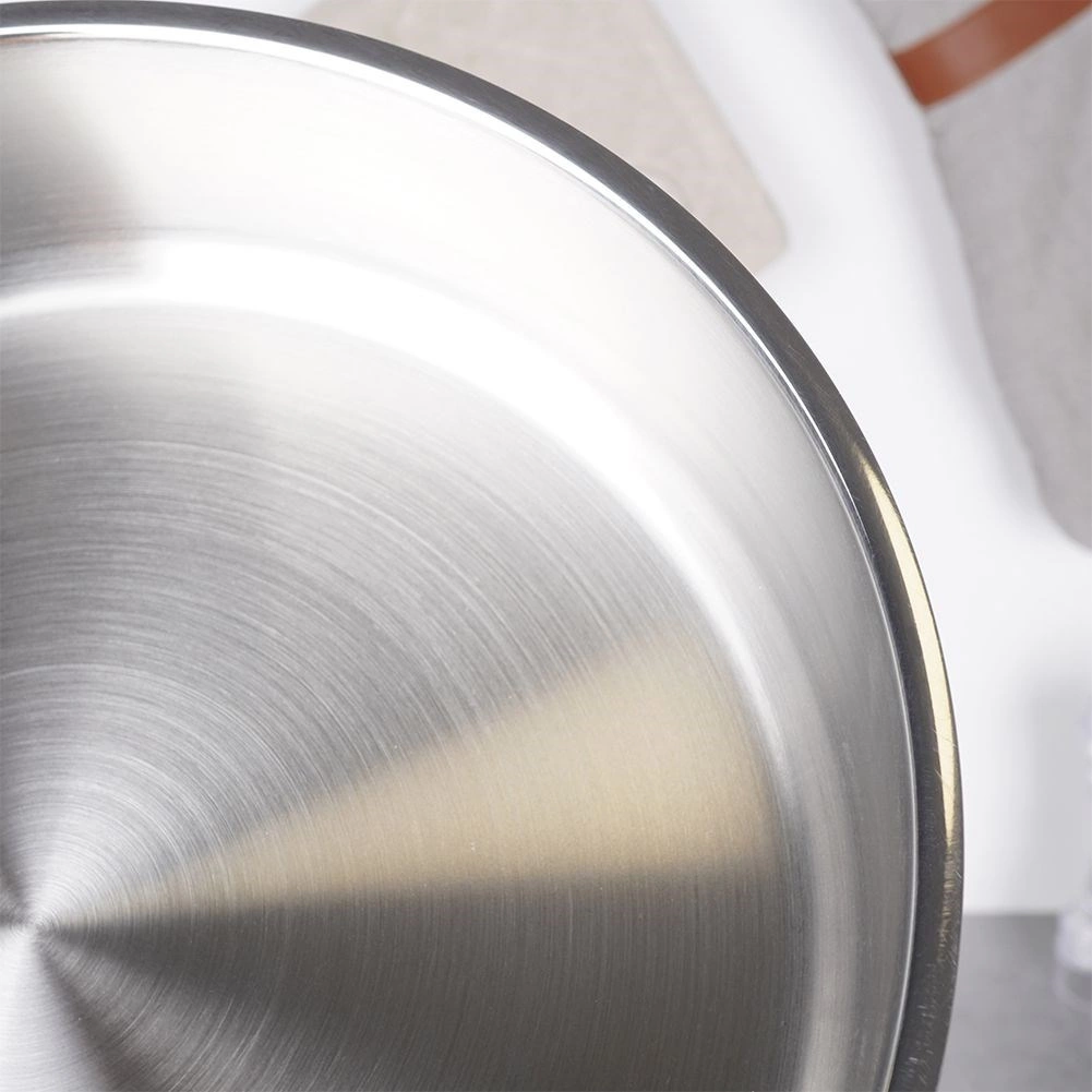 La superficie liscia in acciaio inox è facile da lavare sia a mano sia in lavastoviglie. Il corpo della padella, ben sagomato, riduce al minimo l’adesione dei residui.