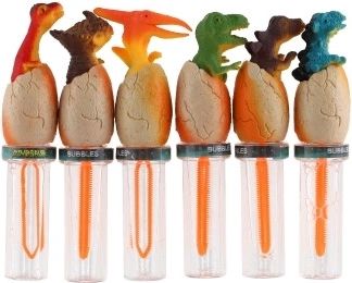 Ogni tappo della bolla di sapone nasconde un dinosauro che incanterà tutti i piccoli amanti delle creature preistoriche.