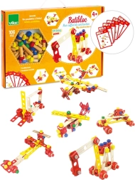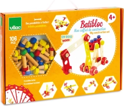 Questo set di costruzioni in legno VILAC Batibloc, di alta qualità, è ideale come primo kit di costruzione per bambini dai 3 anni. Grazie ai pezzi colorati e naturali con fori e al materiale di fissaggio, i bambini possono costruire veicoli, aeroplani e modelli originali, sviluppando al contempo pazienza e manualità.