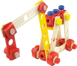 Legno massello, componenti resistenti e un fissaggio sicuro con viti e dadi: ideale per piccoli costruttori dai 3 anni in su.