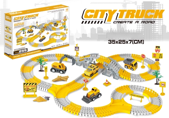 Crea una pista dinamica con veicoli da lavoro e lascia correre la fantasia. Il set contiene 255 elementi che si possono combinare liberamente in varie forme. I segmenti della pista si agganciano con facilità, così bambini e genitori possono realizzare montaggi e modifiche rapide. I veicoli da cantiere realistici rendono il gioco ancora più autentico.