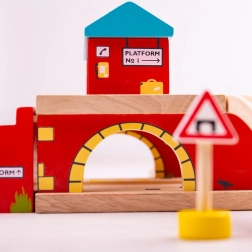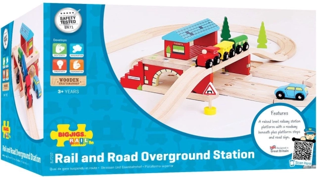 Questo colorato giocattolo in legno replica le iconiche stazioni sopraelevate di Londra. Include segnaletiche londinesi riconoscibili, postazioni taxi, biglietteria e scale per i binari, rendendo questo giocattolo un ottimo complemento a qualsiasi set ferroviario in legno. La Grande Stazione Sopra la Strada permette ai partecipanti al traffico stradale di passare sotto la stazione, mentre il treno arriva e parte. Collega la ferrovia e la strada, offrendo ai bambini innumerevoli possibilità di interazione e gioco.