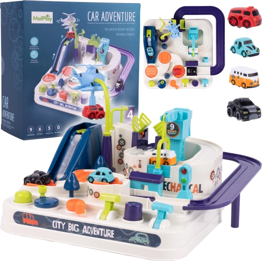 La struttura robusta in plastica di alta qualità garantisce una lunga durata, mentre le quattro macchinine incluse permettono gare immediate e divertimento condiviso con amici o fratelli. Un’idea regalo perfetta che favorisce motricità fine, pensiero logico e abilità di coordinazione.