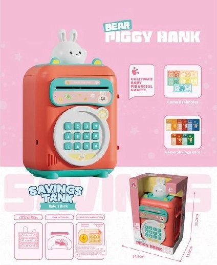 Offri ai bambini un modo divertente per mettere da parte i loro risparmi. Questo salvadanaio in stile cassaforte con il motivo del simpatico coniglietto è realizzato in plastica di alta qualità, risultando leggero, resistente e sicuro per l’uso quotidiano. Grazie alle dimensioni compatte trova posto su mensole e scrivanie, diventando una vivace decorazione per la cameretta.