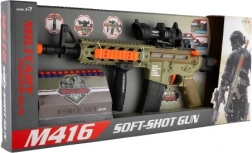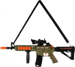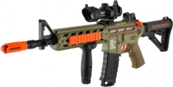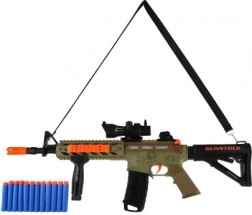 Una mitraglietta d'azione per piccoli difensori offre un divertimento sicuro con dardi in schiuma, effetti luminosi e sonori e vibrazioni. Lunghezza 60 cm, nella confezione 12 dardi e batterie 3× AA (incluse). Adatto dai 3 anni.