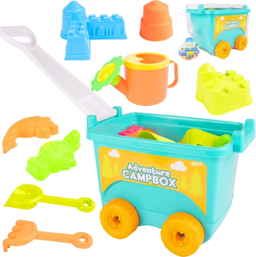 Pratico carrellino blu per sabbia con accessori ideale per giocare al parco giochi e in giardino. Grazie alla struttura leggera e alla maniglia comoda i bambini lo tirano facilmente, mentre è inclusa anche una annaffiatoio per innaffiare e giocare con l'acqua. Un'ottima scelta per sviluppare creatività e motricità durante i giochi nella sabbia.