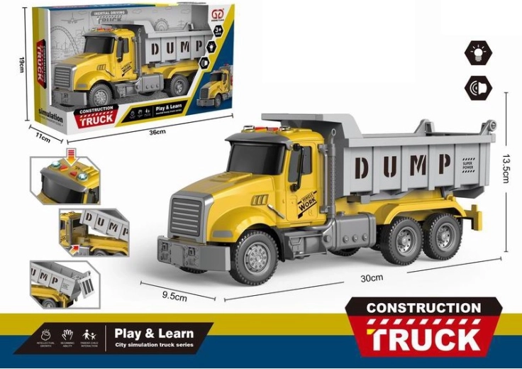 Questo autocarro ribaltabile dettagliato farà felici tutti i piccoli conducenti. Grazie al meccanismo a frizione basta spingerlo e il veicolo continua a muoversi da solo. Gli effetti luminosi e sonori integrati rendono il gioco più realistico e stimolano la fantasia dei bambini.