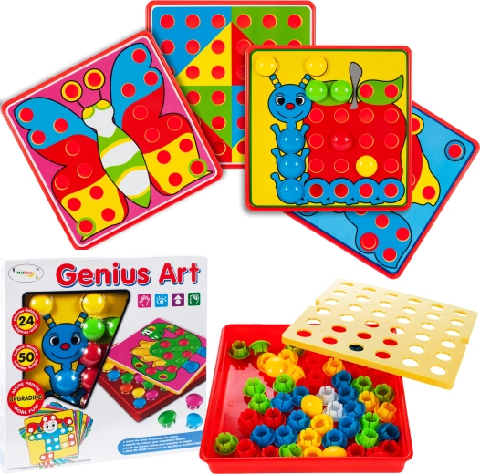Scoprite un divertente gioco educativo in cui i bambini inseriscono bottoni colorati nelle schede da 23,4 × 23,4 cm. Il mosaico sviluppa la motricità fine, la coordinazione occhio–mano, il riconoscimento dei colori e la creatività. Il principio semplice e i colori vivaci garantiscono ore di gioco senza schermi.