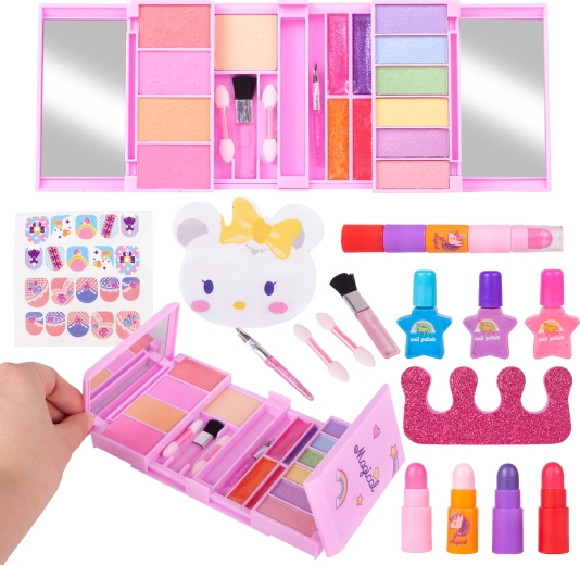 Questo giocoso set trucco micetto offre tutto ciò di cui i bambini hanno bisogno per un make-up creativo e sicuro. La palette compatta si apre facilmente e, grazie alla disposizione pratica, tutti i colori sono ben visibili e a portata di mano. Un regalo perfetto per le piccole vanitose che amano i colori e la fantasia.