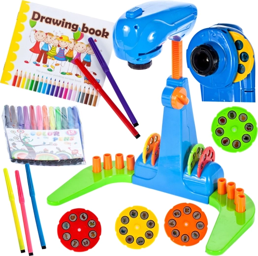 Proiettore divertente ed educativo per piccoli artisti dai 3 anni in su, aiuta a sviluppare creatività e motricità fine. Offre 32 modelli proiettati, regolazione dell’altezza e messa a fuoco dell’immagine per un ricalco semplice. Grazie all’alimentazione a batterie i bambini possono usarlo ovunque, a casa e in viaggio.