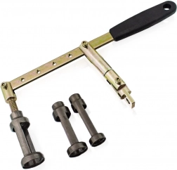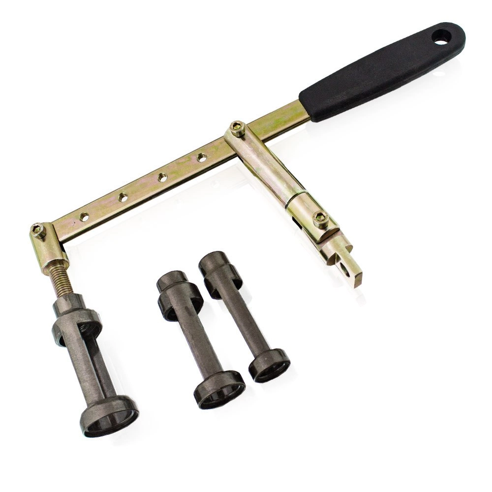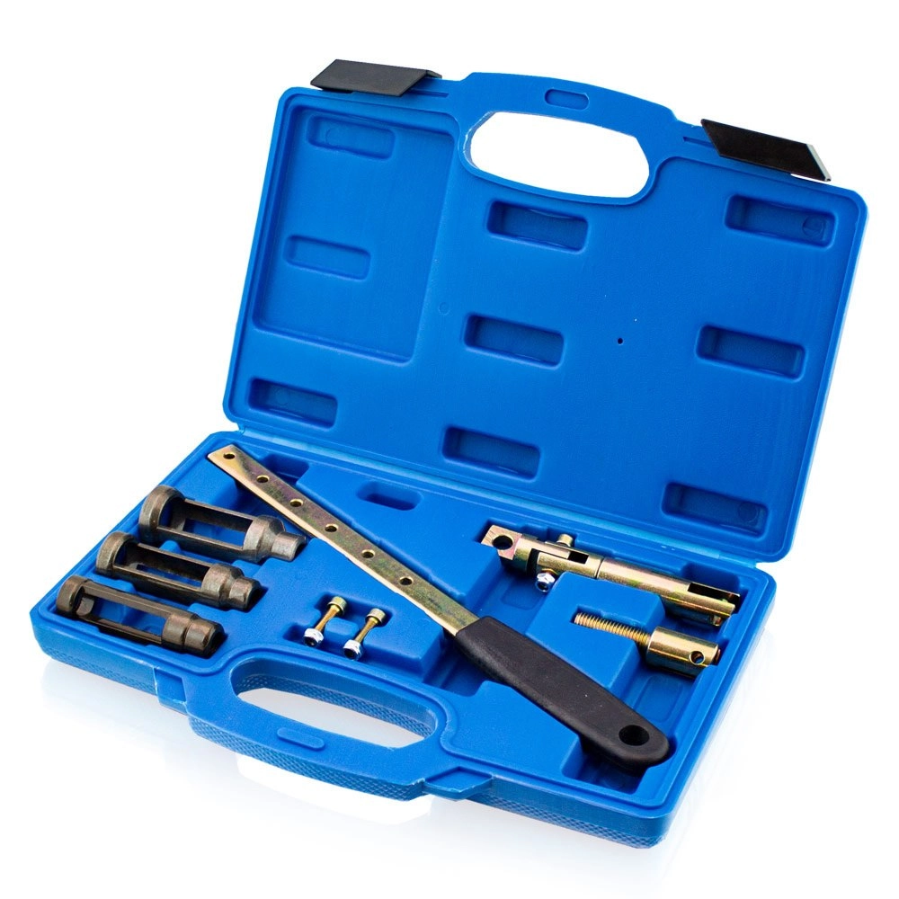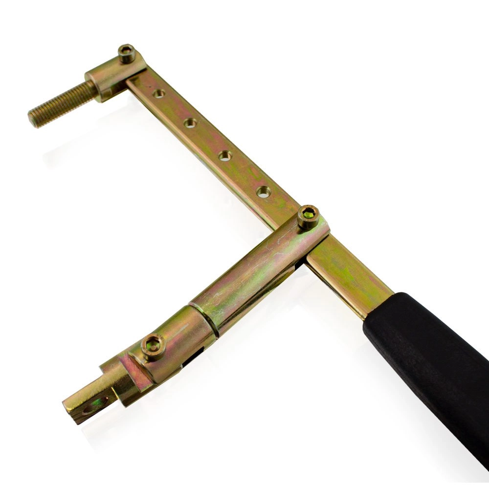 Questo estrattore universale per molle delle valvole consente di comprimere la molla in modo sicuro e preciso e di liberare i mezzaluna della valvola, così da poter effettuare la sostituzione dei paraoli degli steli senza rimuovere la testa del cilindro. Scelta ideale per officine e meccanici fai-da-te che cercano una soluzione efficiente e affidabile per motori 8V, 12V e 16V con albero a camme in testa (OHC).