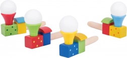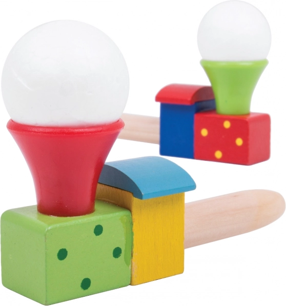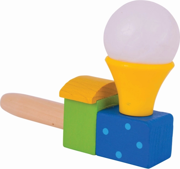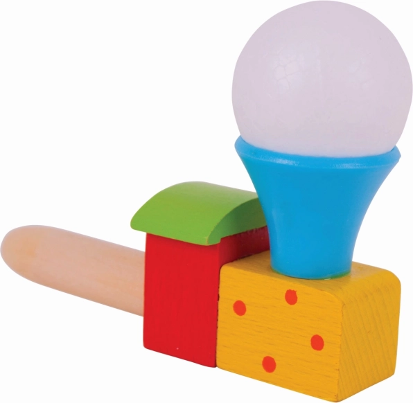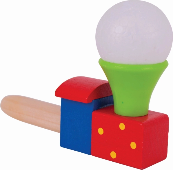 Questa colorata locomotiva in legno con pallina trasforma un semplice soffio in una piccola magia. I bambini allenano il respiro e il controllo del fiato, osservano la pallina bianca fluttuare sopra il camino e sviluppano così coordinazione e pazienza. Ideale per brevi pause di gioco o per un divertimento più concentrato.
