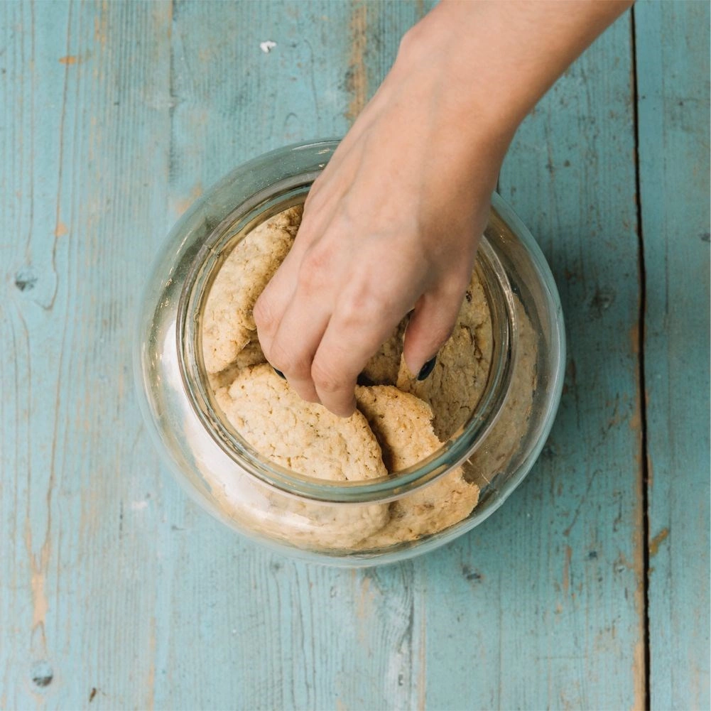 Il corpo trasparente del barattolo permette di vedere le scorte a colpo d’occhio ed è sufficientemente robusto per l’uso quotidiano.