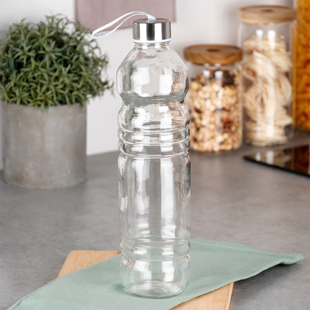 Elegante e resistente, la bottiglia d’acqua in vetro da 1,1 litri è la compagna affidabile per tutta la giornata. Grazie al vetro di qualità e al tappo in metallo con guarnizione in silicone è perfettamente ermetica, così puoi portarla senza preoccupazioni in borsa o nello zaino. Il corpo trasparente facilita il controllo del contenuto ed è perfetta per infusioni di frutta, limonate fatte in casa e succhi freschi.