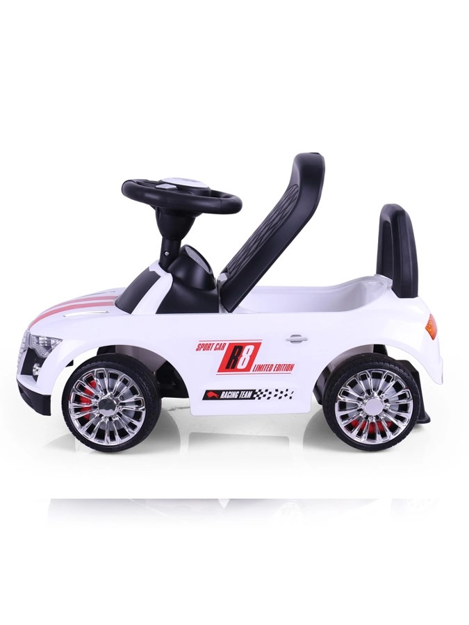 La stilosa bicicletta senza pedali per bambini Milly Mally Racer in colore bianco offre l’aspetto di un’auto sportiva, ottima stabilità e divertimento per bambini da 3 a 6 anni. Dispone di volante interattivo, ruote anteriori sterzanti, pratico vano portaoggetti sotto il sedile e protezione antiribaltamento per una guida più sicura. La capacità di carico massima è di 25 kg.