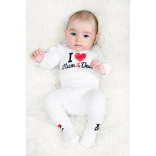 Body a maniche lunghe, stiloso e confortevole, del marchio ceco NEW BABY, ideale per l’uso quotidiano. Grazie al materiale in cotone di qualità è piacevole al tatto, traspirante e delicato sulla pelle sensibile del bambino. La simpatica e dolce stampa I Love Mum and Dad illumina ogni giornata e dona un tocco unico all’outfit.