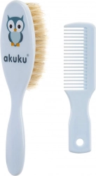 Set delicato per la cura quotidiana dei capelli dei bambini – spazzola con setole naturali e pettine coordinato AKUKU di colore blu. Districa e massaggia delicatamente il cuoio capelluto sensibile, è senza BPA e adatta dalla nascita.