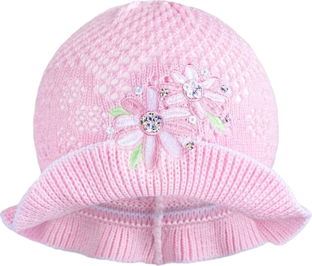Elegante cappellino primaverile lavorato a maglia per neonati e bimbi piccoli del marchio NEW BABY nella delicata combinazione rosa‑bianco. Realizzato in 100% cotone, morbido, traspirante ed elastico. È decorato con un tenero motivo floreale e un bordo colorato; il materiale elastico si adatta comodamente alla circonferenza della testa di circa 40–50 cm.