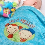 La morbidissima copertina per bambini Sensillo Hey Hello conquista con la sua sofficità e il design delicato. È double-face: strato superiore in morbido peluche, inferiore in velluto liscio. Il materiale è ipoallergenico, indelebile e di facile manutenzione. Dimensioni ideali 75 × 100 cm per casa e viaggio.