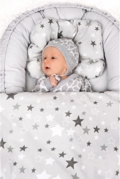 Pratico e confortevole nido per neonato con piumini del marchio New Baby, in elegante design grigio con stelline. Offre al bebè una sensazione di sicurezza, è realizzato con materiali sicuri e di alta qualità, adatto da 0 a 3 mesi e perfetto per lettino, divano e viaggio.