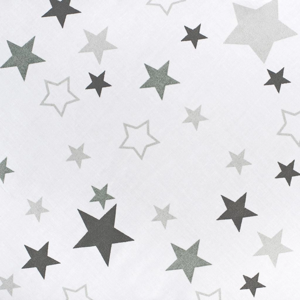 Il set include piumini coordinati, utilizzabili anche separatamente per il passeggino o il lettino. I materiali sono solidi nei colori, non provocano reazioni allergiche e sono facili da mantenere. Il motivo grigio con stelle si adatta a qualsiasi corredo.