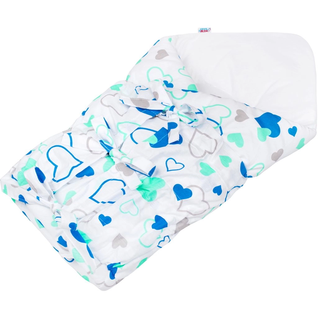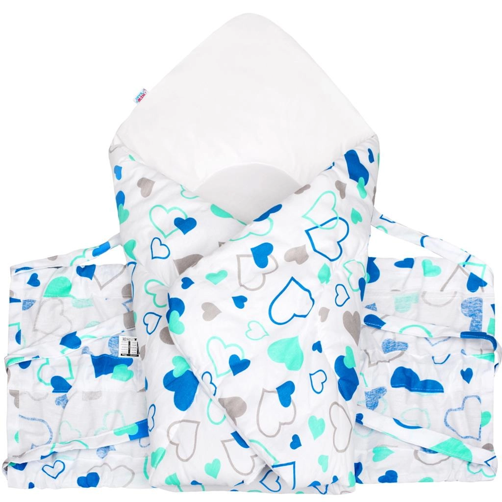 Il delicato pattern con cuori blu, turchesi e grigi ha un effetto calmante e si abbina perfettamente all’angolo nursery e al passeggino.