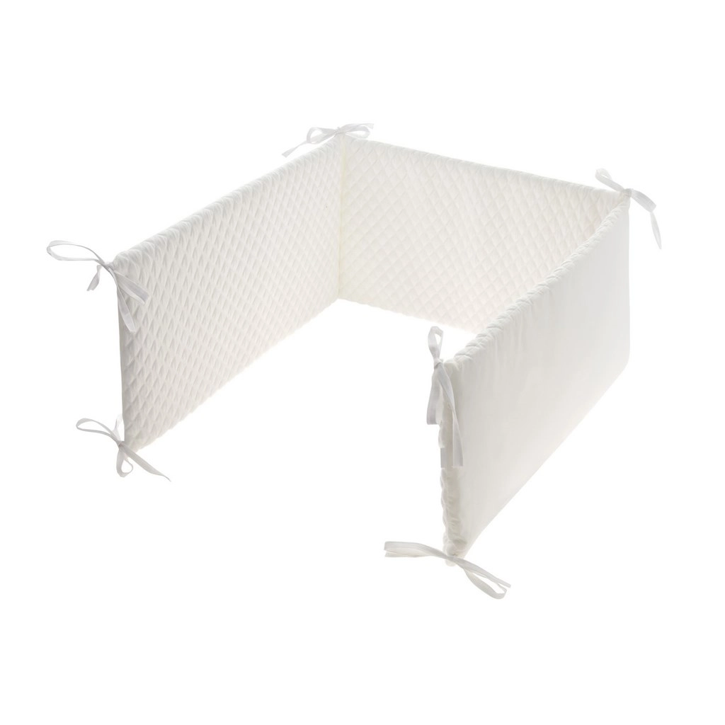 Il morbido paracolpi lungo il perimetro del lettino attutisce gli urti e crea un nido accogliente. I pratici lacci mantengono il paracolpi ben fissato in posizione.