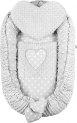 Nido lussuoso per neonati con cuscinetto e copertina NEW BABY Minky cuoricino – grigio