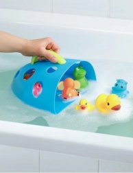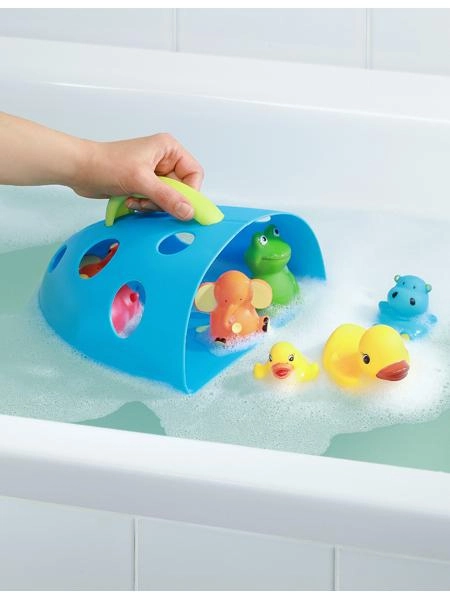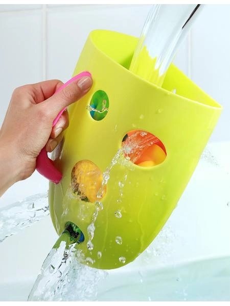 Le pareti e il fondo forati garantiscono il deflusso dell’acqua e la circolazione dell’aria, così i giocattoli si asciugano rapidamente dopo il bagnetto.