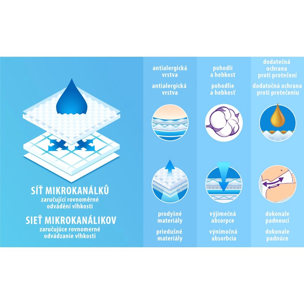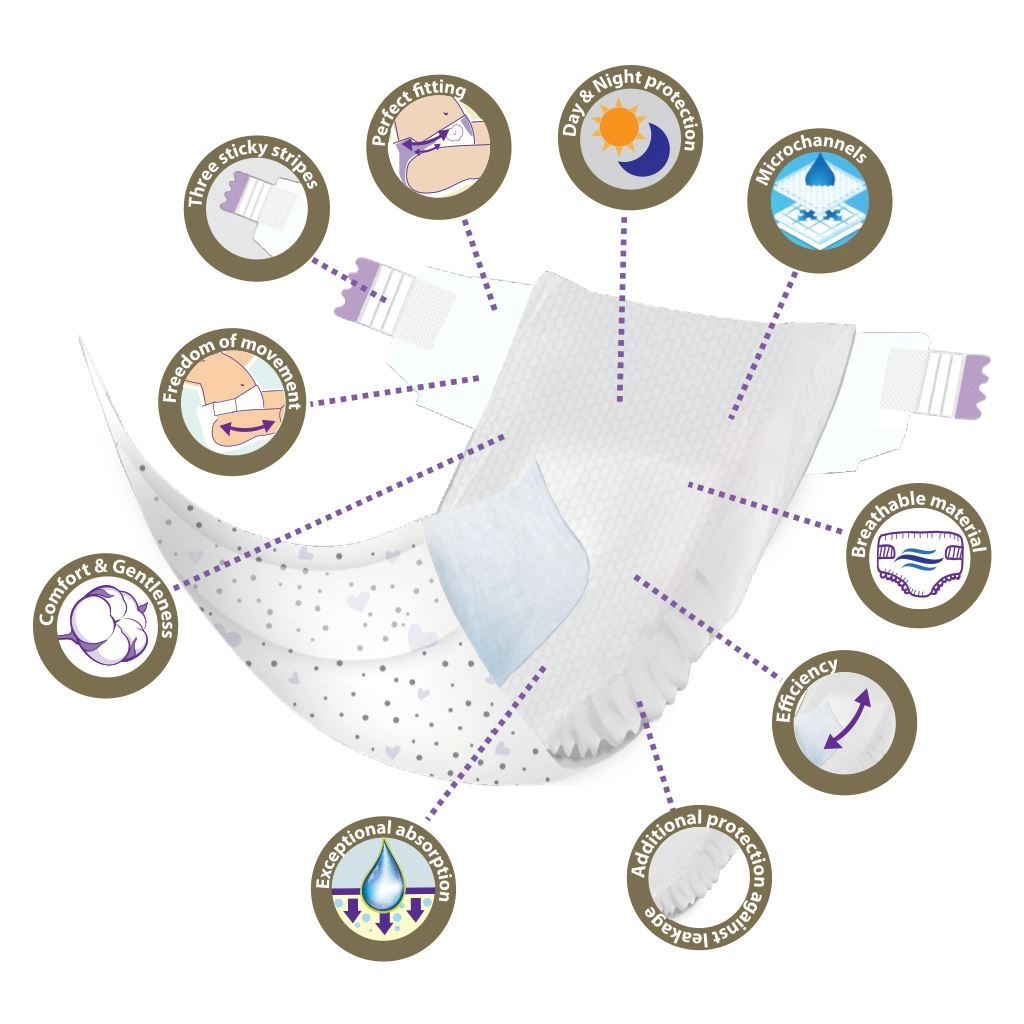 • Assorbenza eccellente e tenuta al 100% senza odori sgradevoli.