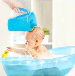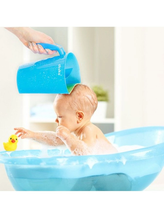 Il pratico contenitore AKUKU per il risciacquo dei capelli dei bambini rende il bagnetto facile e senza lacrime. Grazie al bordo elastico morbido l’acqua non scende negli occhi, la doppia camera garantisce un risciacquo accurato e la maniglia ergonomica un versamento confortevole. Adatto fin dalla nascita, senza BPA.