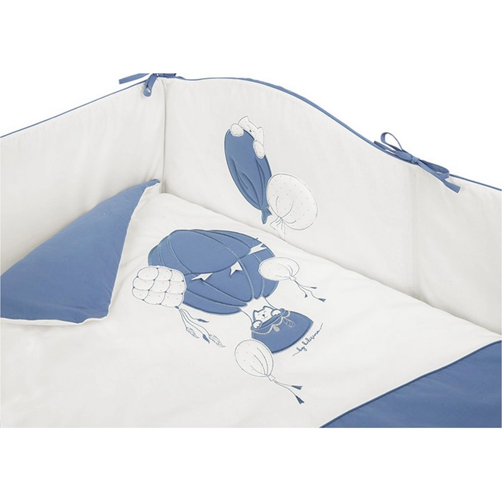 Adorabile set biancheria da letto per lettino da 3 pezzi in morbido 100% cotone con motivo di palloncini e corona che offre dolcezza, sicurezza e sonno tranquillo. Include copripiumino 90 × 120 cm, federa 40 × 60 cm e paracolpi ca. 180 cm con laccetti per un facile fissaggio.