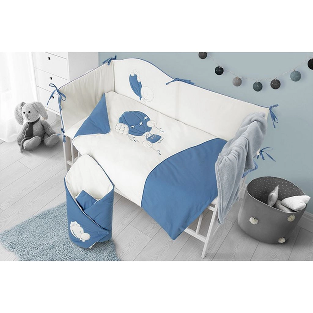 Il set per lettino BELISIMA Ballons in combinazione blu-bianco colpisce per i motivi giocosi di palloncini e i colori delicati e rasserenanti. Il cotone 100% naturalmente traspirante è piacevole al tatto e delicato sulla pelle sensibile del bebè.