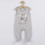 La salopette è rifinita con bordi a contrasto e un grande disegno di topolino; il giacchino è tinta unita e si chiude su tutta la lunghezza. L’alta qualità corrisponde agli standard del marchio ceco New Baby e la collezione Mouse conquista con un design pulito e senza tempo nel neutro grigio.