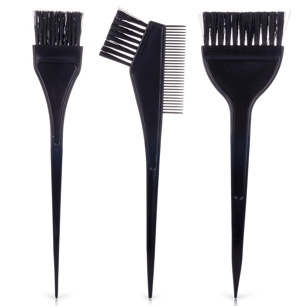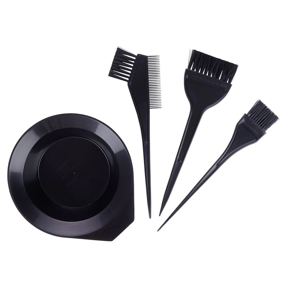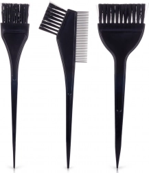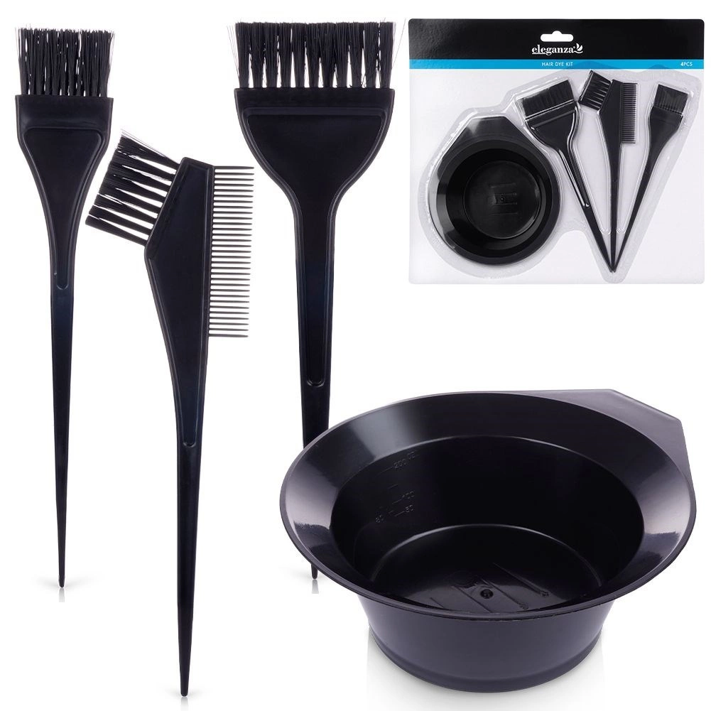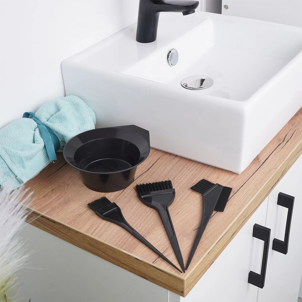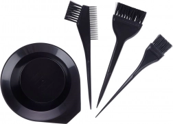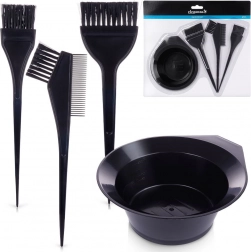 Set completo per la colorazione dei capelli per uso domestico e professionale: ciotola con scala graduata e tre pennelli applicatori, incluso un pennello con pettine. Plastica resistente ai prodotti chimici, manici appuntiti per sezionare con precisione le ciocche e riutilizzo grazie alla facile pulizia.