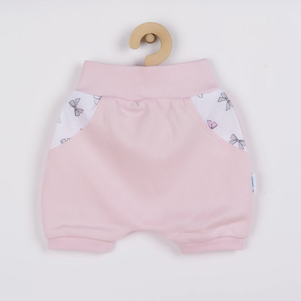 Questo set rosa da 3 pezzi NEW BABY Perfect Summer è ideale per le giornate calde. Il body a maniche corte è decorato con un motivo per bambini e profili colorati attorno a collo, maniche e gambine. La pratica chiusura con bottoncini a pressione tra le gambine rende più veloce vestizione e cambio. I pantaloncini hanno una vita ampia ed elastica e orli più stretti sulle gambe per un indosso confortevole senza segni. La fascia elastica si adatta bene alla testolina e rimane in posizione.
