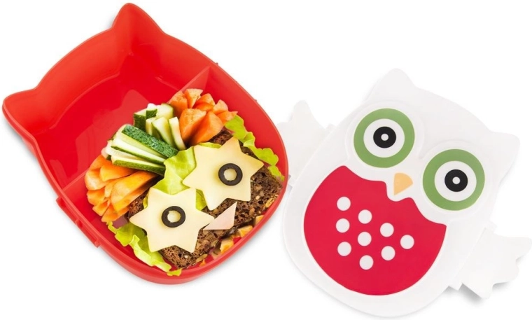 Il porta pranzo con motivo gufo rende piacevole ogni pasto fuori casa: per la scuola, il lavoro e le gite. I due scomparti pratici mantengono gli alimenti separati senza mescolare sapori e odori. Le comode clip a forma di ali garantiscono una chiusura salda e un utilizzo facile anche per i bambini.