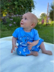 Dolce e confortevole pigiama estivo per bambini della collezione New Baby Dream, piacevole al tatto grazie al materiale morbidissimo e al motivo giocoso con l'orsetto. Il set in 100% cotone è composto da una maglietta a maniche corte e shorts, delicati sulla pelle dei bambini, che non limitano i movimenti e vestono alla perfezione grazie alla vita elastica. Ideale per dormire e anche come abbigliamento estivo leggero.
