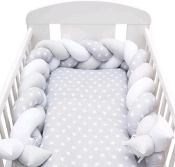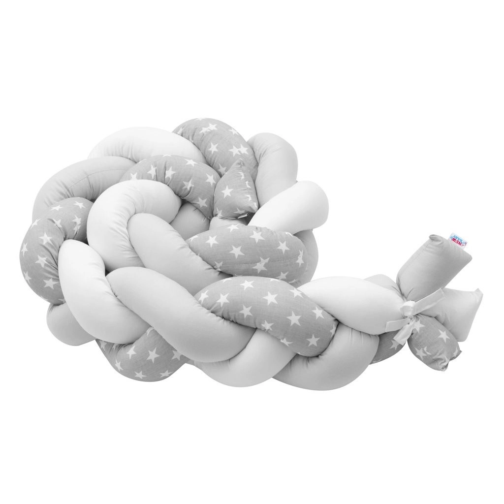 Paracolpi intrecciato per lettino treccia grigio‑bianco Stelline NEW BABY