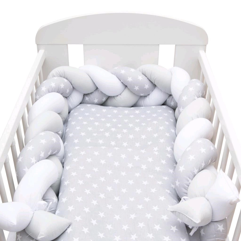 Il paracolpi intrecciato per lettino del marchio NEW BABY è elegante e sicuro: protegge il bebè dagli urti contro le sponde e crea un ambiente accogliente e tranquillo per il sonno. Grazie all’imbottitura morbida e al cotone 100% di qualità è piacevole al tatto, flessibile e si adatta facilmente a qualsiasi lettino. Il design grigio‑bianco con stelline, neutro, si abbina a ogni cameretta.