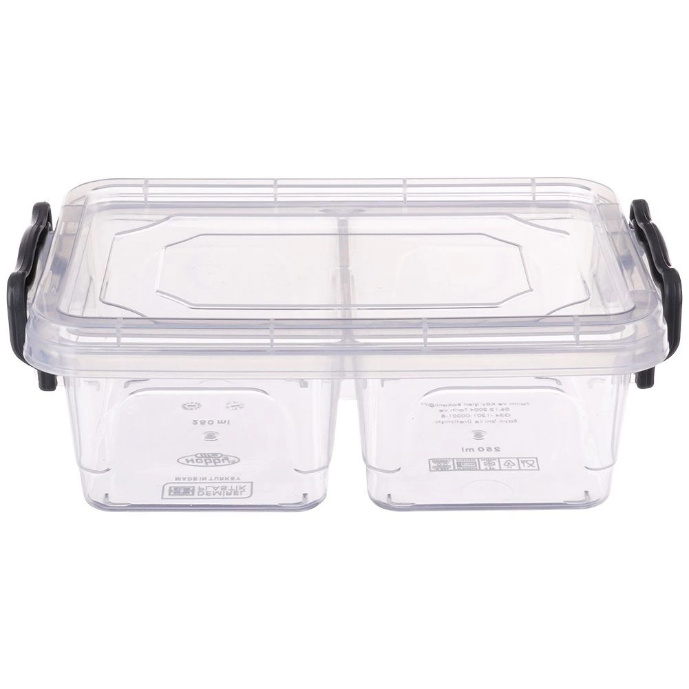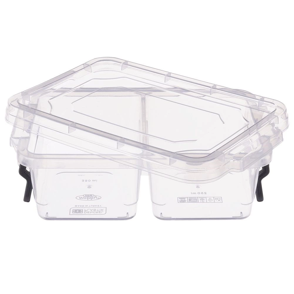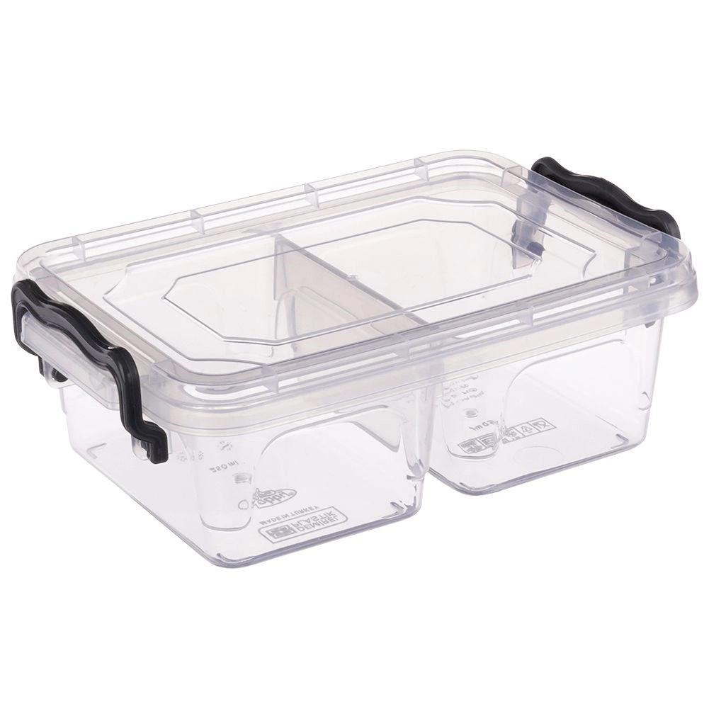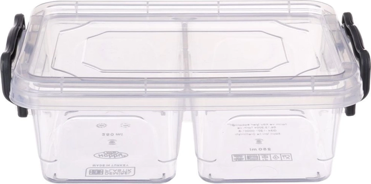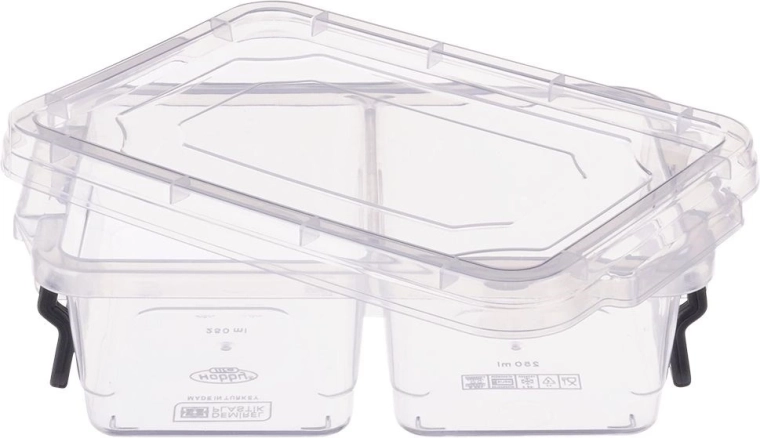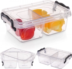 Contenitore alimentare trasparente da 500 ml che consente di tenere snack e contorni ben separati grazie a 2 scomparti indipendenti. Le robuste clip di chiusura mantengono il contenuto fresco e riducono al minimo il rischio di fuoriuscite. Grazie al design trasparente hai sempre sotto controllo il contenuto.