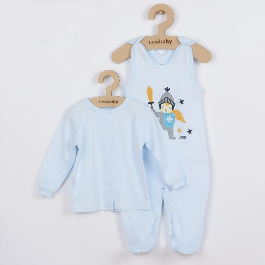 Il set New Baby Knight è ideale per l’uso quotidiano in casa e durante le passeggiate. Grazie al morbido cotone, è traspirante, soffice e confortevole, così il bebè resterà al caldo e a suo agio tutto il giorno. Il cardigan tinta unita si abbina facilmente, mentre la salopette è decorata con un tenero motivo a tema cavaliere.