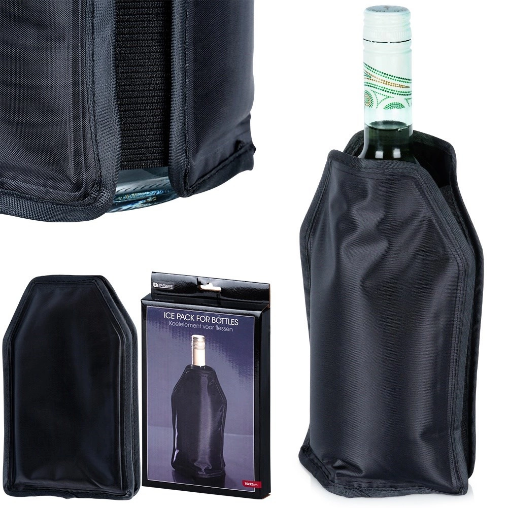 Rivestimento refrigerante elastico e resistente di dimensioni 15 × 22 cm, riempito con gel refrigerante speciale che, dopo essere stato raffreddato in congelatore, mantiene in modo affidabile la temperatura ottimale della bevanda per diverse ore. Adatto a vari tipi di bottiglie: vino, spumante, vodka o bibite.