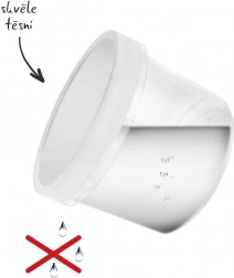 Contenitore compatto e resistente con coperchio bianco e corpo trasparente che consente di controllare facilmente il contenuto senza aprirlo. Grazie alla guarnizione di qualità del coperchio, il contenuto è protetto in modo affidabile da fuoriuscite e mantiene la freschezza più a lungo.