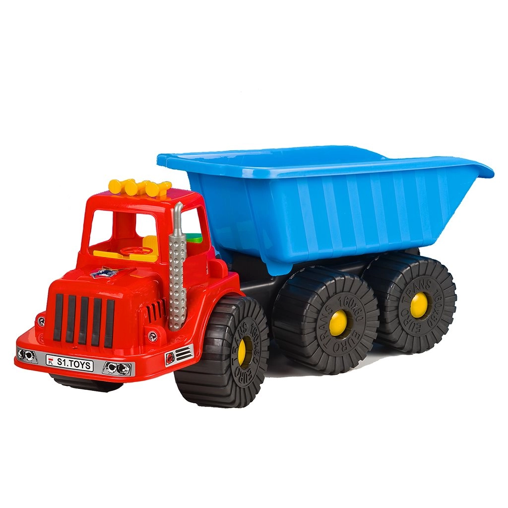 Il robusto camion ribaltabile per bambini Bayo Arnie lungo 90 cm farà felici piccoli costruttori e genitori. Offre una configurazione a tre assi, ruote robuste, asse anteriore sterzante e cassone ribaltabile per uno scarico facile. È realizzato in plastica di qualità e atossica, ha spigoli arrotondati per la sicurezza e una portata massima di 10 kg. Adatto ai bambini dai 2 anni, con certificazioni CE e EN 71.